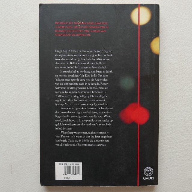 Hierdie roman is gesentreer rondom die lewens van ‘n handjievol lede van Anonieme Alkoholiste in Bellville in die Kaap. Elna is ‘n organiseerder – beginselvas dog verdraagsaam, en toegewyd aan die saak na ‘n promiskue drinklewe. Jim gaan uit met haar dogter. Hy is ‘n lieflike ou wat as ‘n kroegman werk, maar oor die algemeen onbetroubaar is en nie ophou drink nie. Robert is ‘n eensame dog tevrede middeljarige man. Hy leef ‘n ordentlike en beskeie lewe en werk as ‘n straatparkeerwag. Hy hou daarvan om heelnag in Voortrekkerweg-kafees te sit en koffie te drink. Tot dusver het liefde hom nog nie daar gekry nie. Hierdie en ander mense lei klein, meestal rustige lewens wat gedryf word of agtervolg word deur gebeure uit die verlede. Hulle spandeer hul dae en nagte om voortdurend gate toe te stop wat nooit gevul sal word nie soos Robert se konstante herinneringe aan die dogtertjie wat hy eens mishandel het.