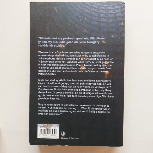 Wanneer Harry asemskep tussen sy omswerwinge deur Afrika, kom kuier hy by sy geliefde ma in Johannesburg. Gusta is veral na aan sy hart ná sy pa haar vir ’n jonger pop gelos het. Gelukkig weet Harry sy is veilig daar bo in haar luukse penthouse in Ponte Towers. Teen die tyd dat Harry in Oos-Afrika opgespoor word, is sy ma al dae lank dood. Harry kry die reuk van ’n groot gekonkel. Nie eens daai parmantige Ella Neser gaan hom keer nie. Nog ’n hoogtepunt in Chris Karsten se Ella Neser-oeuvre.