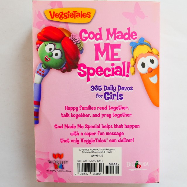 A well-known VeggieTales song is paired with music in book form for the first time. He thought it all over. He got it just right. You make him happy — you are his delight. When you look in the mirror, you’ll see his touch… ’cause God made you special, and he loves you very much! Join Bob and Larry and their friends as they spread the joyful message to children that God made each of us special! Here, the lyrics to this favorite VeggieTales song are illustrated with a cast of familiar characters and paired with a sound button that provides musical fun. The book also features a mirror so children can see themselves as they read the words, ‘God made you special and he loves you very much!’ Ages 3-5.