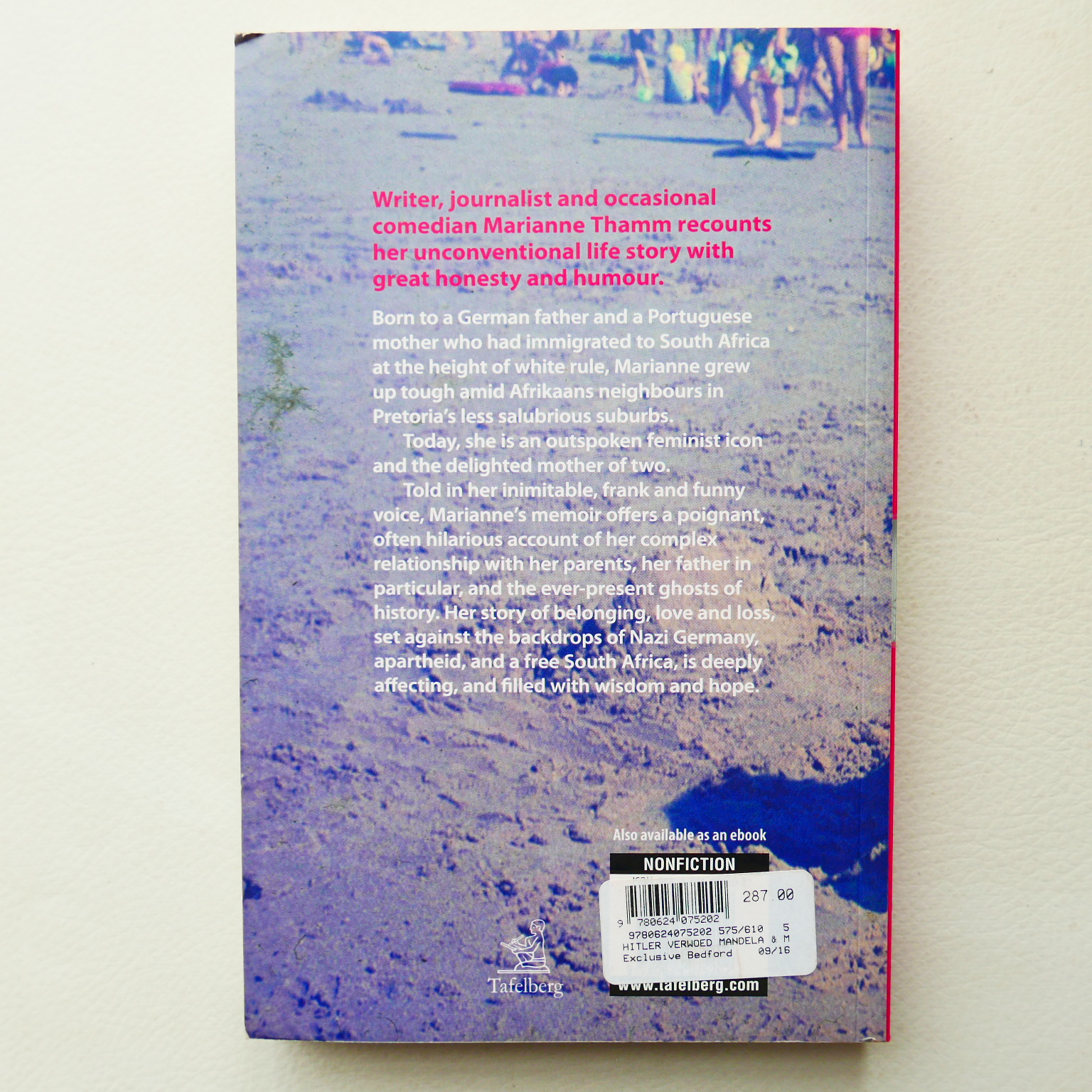 “Marianne Thamm delves into her own unconventional life story. Her German father fought for Hitler and made munitions for Verwoerd. He married her largely illiterate Portuguese mother who worked as a cleaner in England. Today Marianne is the proud mother of two (black) teenagers … Hers is the story of the last century, of the defeat of bigotry and a new era ushered in by Mandela. Sad at times, deeply moving and, like Marianne, hugely entertaining”–Publisher description.