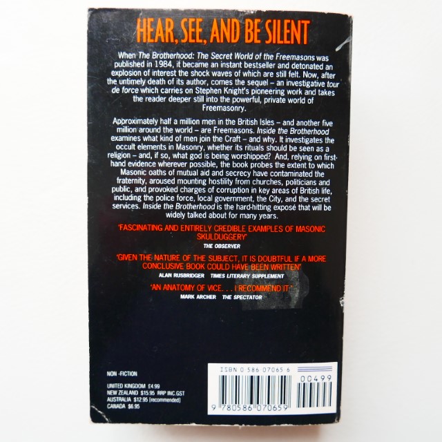 The book Inside the Brotherhood: Further Secrets of the Freemasons by British journalist Martin Short (published in 1989) is an extensive investigative exposé on the secretive world of Freemasonry, particularly in Britain, following up on the work of Stephen Knight’s The Brotherhood.