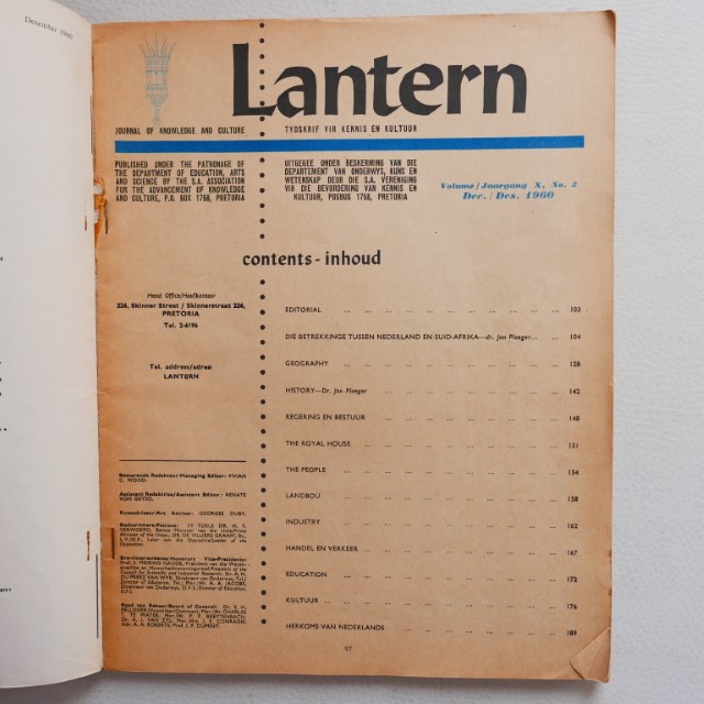 LANTERN – Tydskrif vir Kennis en Kultuur – Journal of Knowledge and Culture – Dec/Des 1960