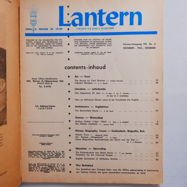 LANTERN – Tydskrif vir Kennis en Kultuur – Journal of Knowledge and Culture – Dec/Des 1964