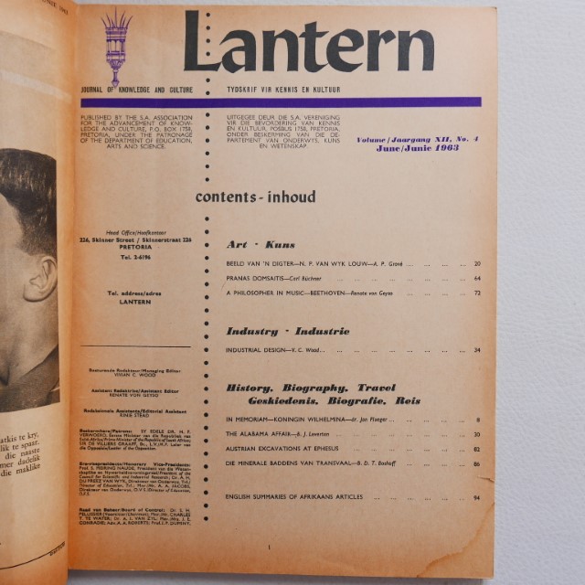 LANTERN – Tydskrif vir Kennis en Kultuur – Journal of Knowledge and Culture – June/Junie 1963
