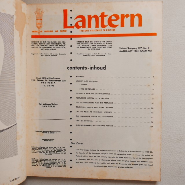 LANTERN – Tydskrif vir Kennis en Kultuur – Journal of Knowledge and Culture – March-May/Maart-Mei 1965