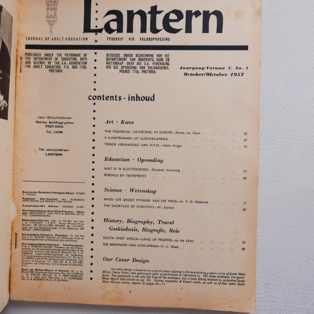 LANTERN – Tydskrif vir Kennis en Kultuur – Journal of Knowledge and Culture – October/Oktober 1957