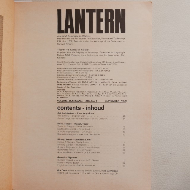 LANTERN – Tydskrif vir Kennis en Kultuur – Journal of Knowledge and Culture – September 1969