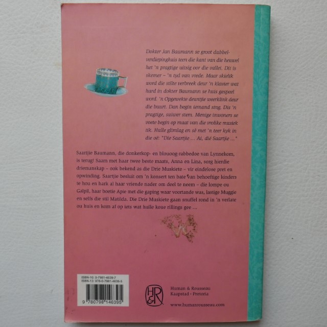 Ons ontmoet Saartjie Baumann, die langbeenmeisie met die wipneus, kuiltjies in die wange en duisende duiweltjies in haar oë. Hierdie rabbedoe en haar twee maats staan bekend as Die Drie Muskiete en al wat hulle lewe versuur, is seuns en ’n klein niksnuts genaamd Muggie. Saartjie reël ’n konsert om geld vir liefdadigheid in te samel en skryf haar eie toneelstuk daarvoor, maar dinge loop nie heeltemal soos beplan nie. ’n Paar dae later sluip sy en haar maats in by ’n bouvallige ou huis waar ’n kluisenaar jare gelede dood is en ontdek ’n geraamte en ’n ysterkis. Hulle het skaars van hierdie avontuur herstel wanneer Saartjie besluit om te gaan heuning uithaal. Die bye steek hulle egter nie so erg soos die arme hoenders op ’n nabygeleë kleinhoewe nie! Die laaste dag op laerskool aap Saartjie tot almal se vermaak party van die onderwysers na en dan moet sy aan ’n debat teen ’n seun deelneem. Ja-nee, sy is beslis ’n besige meisie!