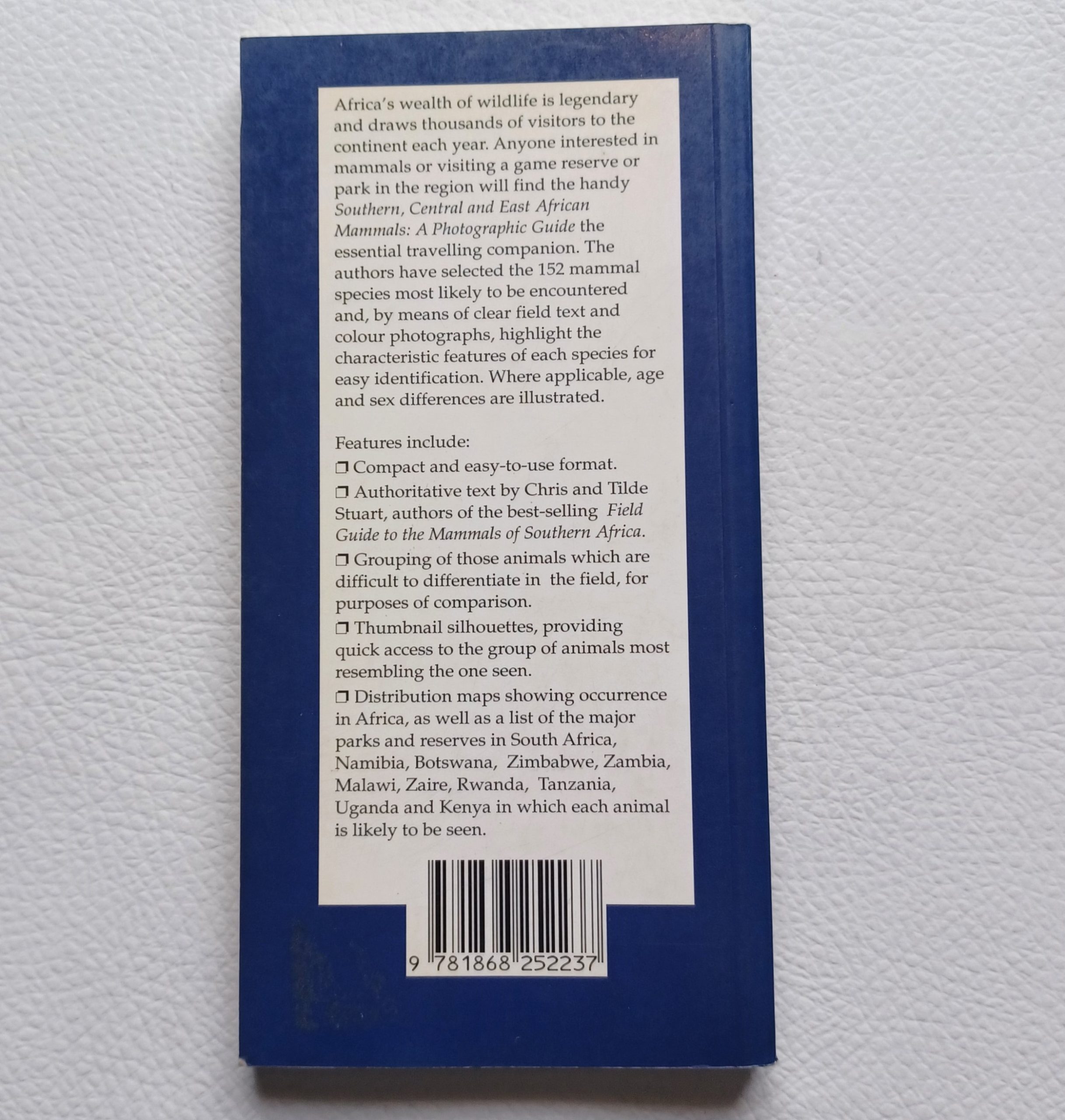More than 1 000 mammal species occur in Africa south of the Sahara Desert. These creatures vary in size from the massive elephant to the tiniest bats, shrews and mice. A Photographic Guide to Mammals of Southern, Central and East Africa was compiled with a view to easing identification of many of the larger and more conspicuous mammals in the region, as well