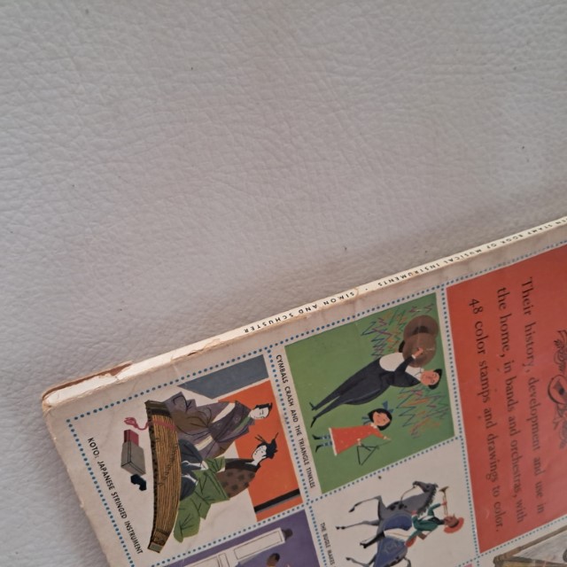 Musical Instruments – Their history, development and use in the home, in bands and orchestras, with 48 color stamps and drawings to color. – NONE OF THE DRAWINGS HAVE BEEN COLOURED