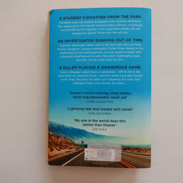 The first installment in Jeffery Deaver’s Colter Shaw series. The son of a survivalist family, Colter Shaw is an expert tracker. Now he makes a living as a “reward seeker,” traveling the country to help police solve crimes and locate missing persons for private citizens. “You’ve been abandoned. Escape if you can. Or die with dignity.” Hired by the father of a young woman who has gone missing in Silicon Valley, Shaw’s search takes him into the dark heart of America’s cutthroat billion-dollar video-game industry. When another person goes missing, Shaw must Is a madman bringing a twisted video game to life? Encountering eccentric designers, trigger-happy gamers, and ruthless tech titans, Shaw soon learns that he isn’t the only one on the someone is on his trail and closing fast….